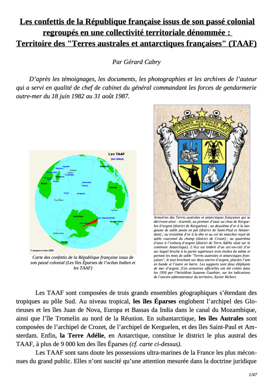 Les confettis de la République française issus de son passé colonial regroupés en une collectivité territoriale