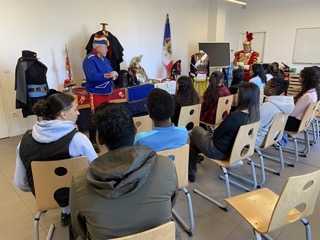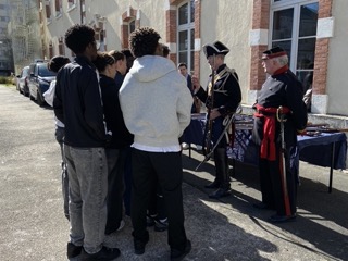 Les élèves ont pu assister et participer à des présentations statiques et dynamiques de matériels de cette époque par des reconstituteurs et les comparer aux dotations actuelles en PGIG et en GM