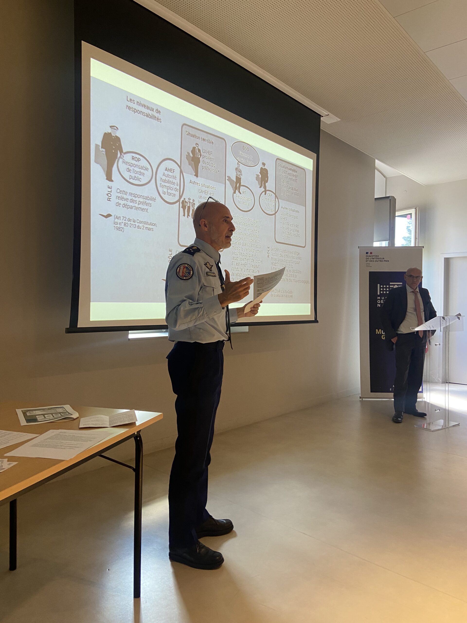 - « Comment permettre et garantir l’exercice apaisé de l’expression publique ? » par le général d’armée (2S) Jean-Régis Véchambre et le général de division Bertin Malhet, inspecteur de la gendarmerie mobile